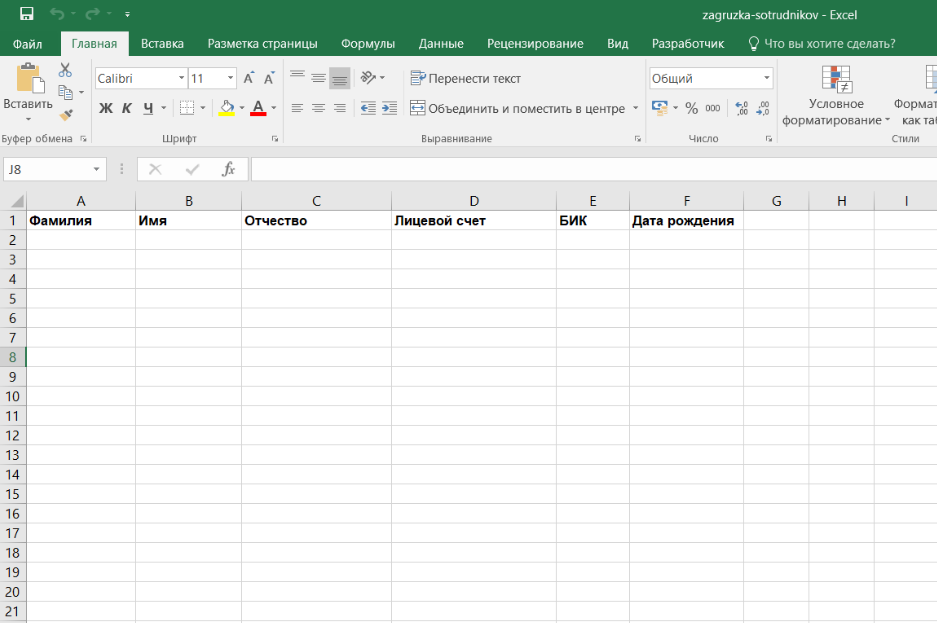 Так выглядит шаблон файла со списком сотрудников, который надо загрузить в сервис: