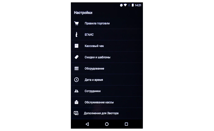 ШАГ 3. Добавьте в настройках кассы подключенный терминал: на главном экране кассы выберите пункт «Настройки»