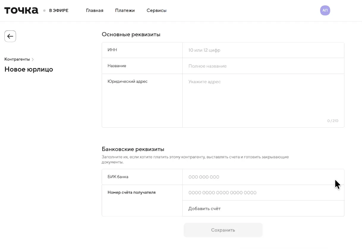 Шаг 4. Заполните карточку контрагента.