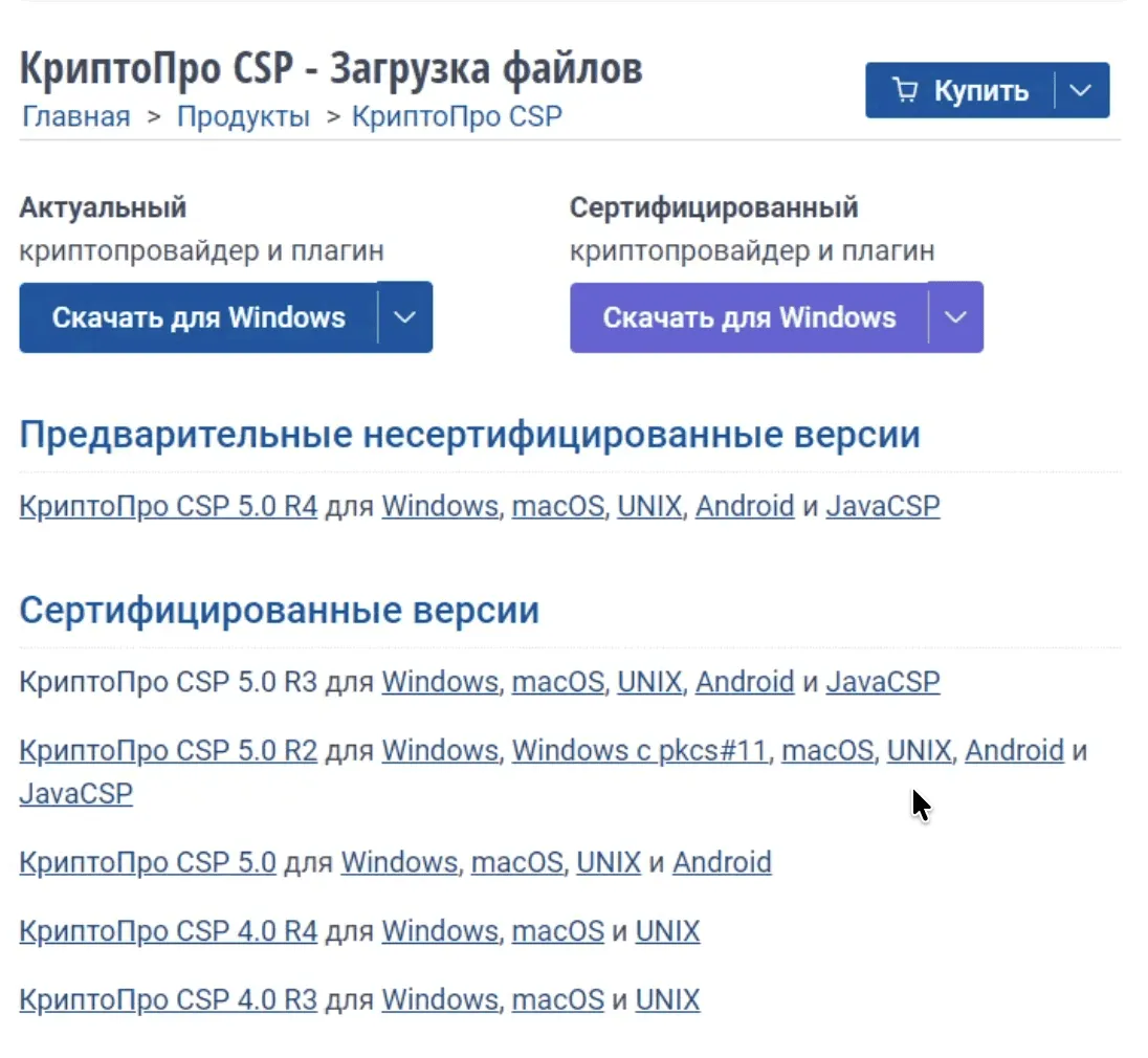 Установите сертифицированную версию — КриптоПро CSP 5.0 R3. Это гарантирует стабильную работу и совместимость с важными сервисами.