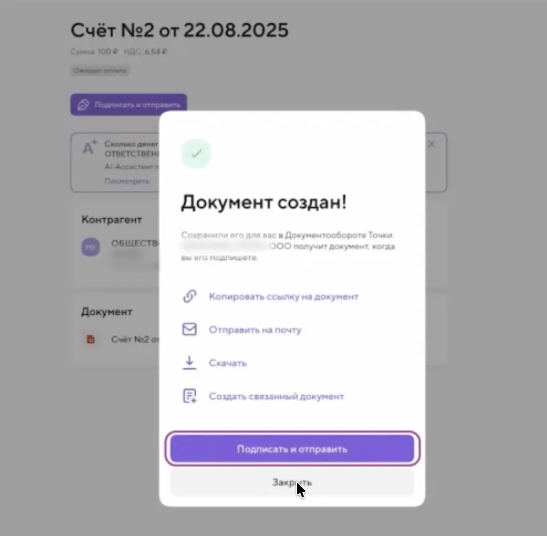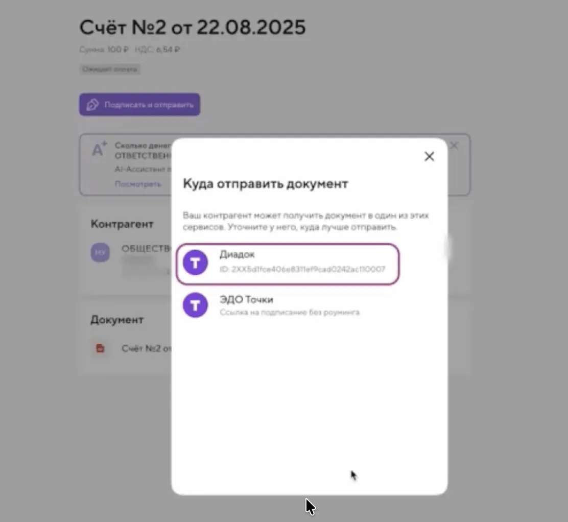 - если контрагент не использует ЭДО или тоже клиент Точки — выберите Точку.