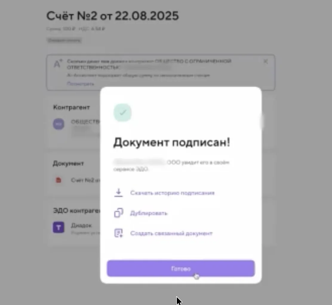 Чтобы подключить квалифицированную электронную подпись и подписывать документы в ЭДО, необходимо подключить Продвинутый Документооборот с любым пакетом исходящих документов.