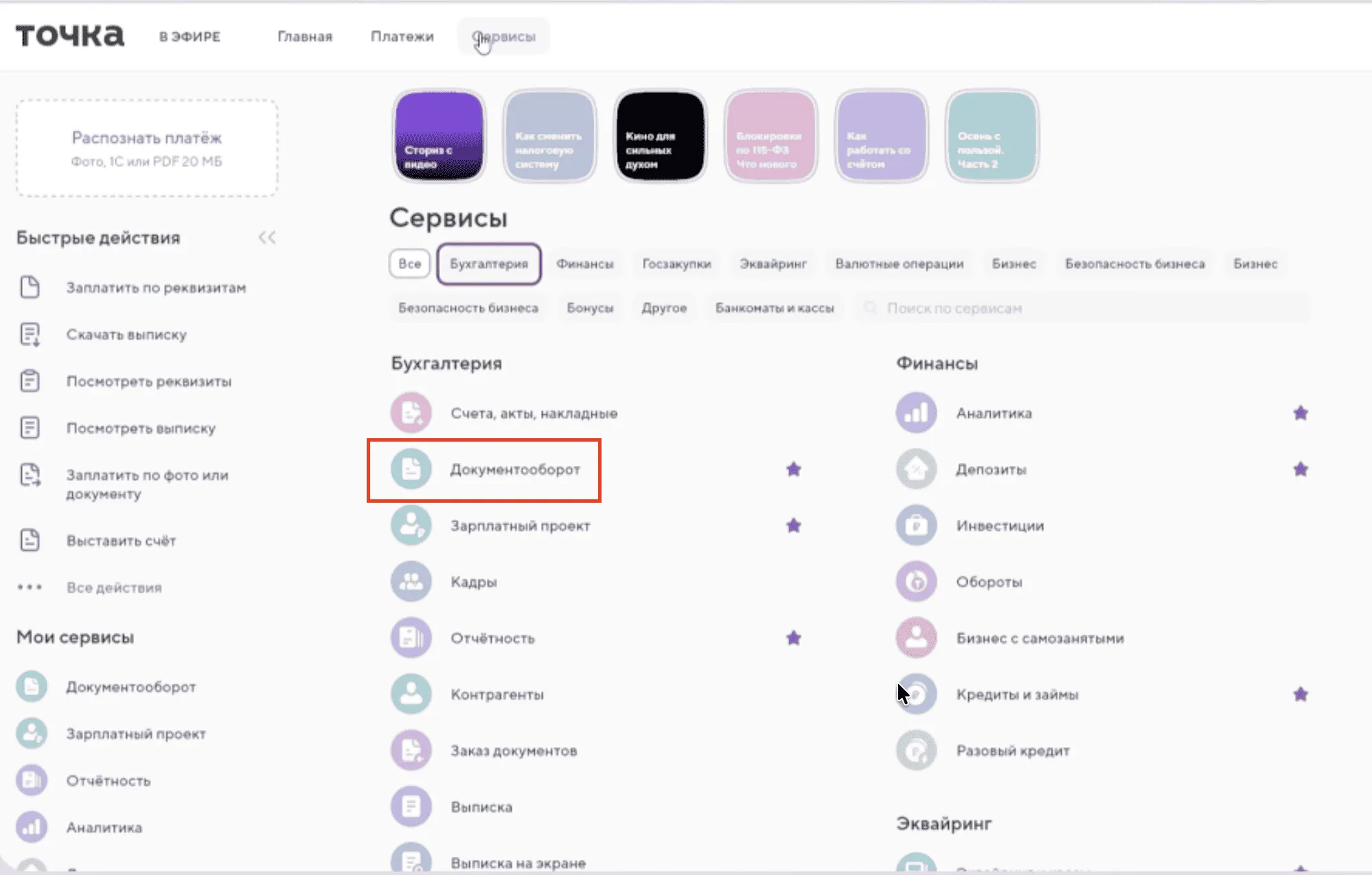 Если у вас уже есть счёт в Точка Банк, просто зайдите в раздел «Документооборот» в интернет-банке и начните работу.