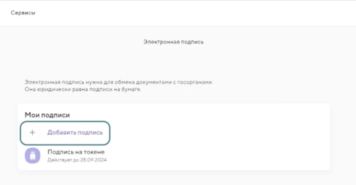 3. Откройте раздел «Электронная подпись» и нажмите «Добавить подпись».