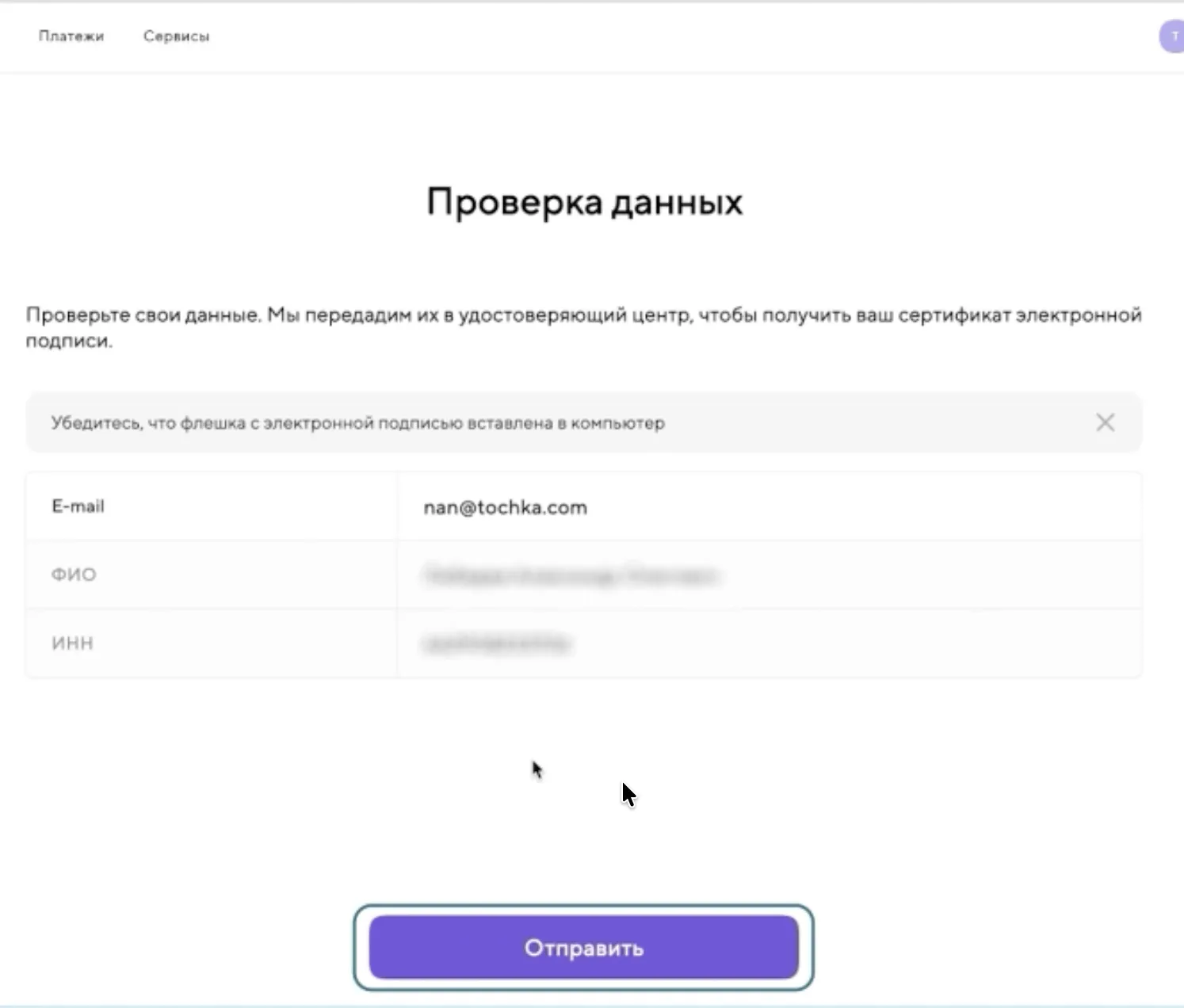 Если всё верно, нажмите кнопку «Отправить».