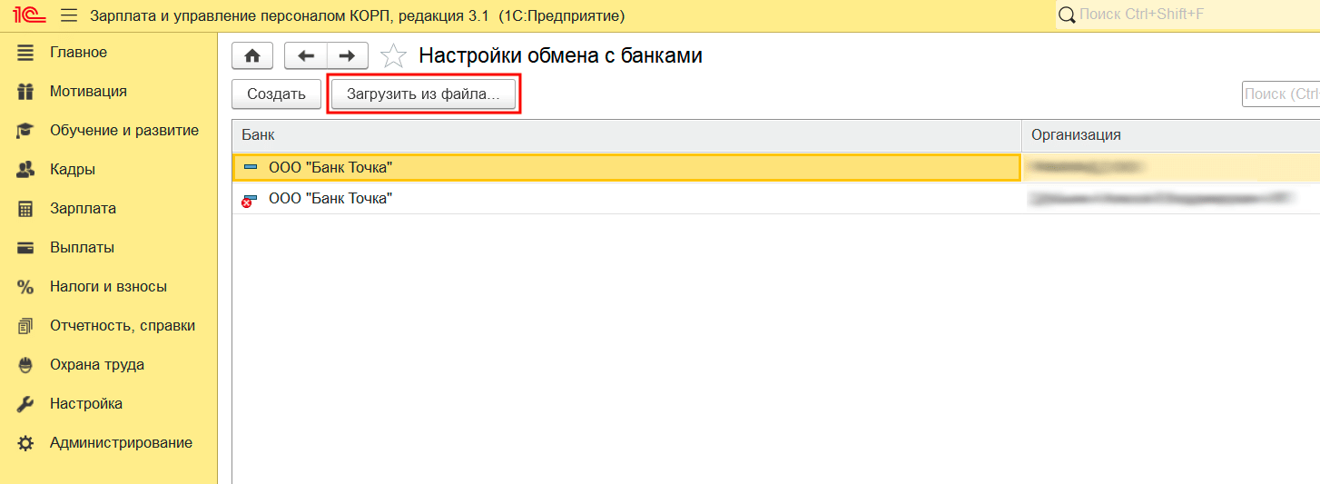 Выберите компанию, для которой настраиваете интеграцию с 1С.