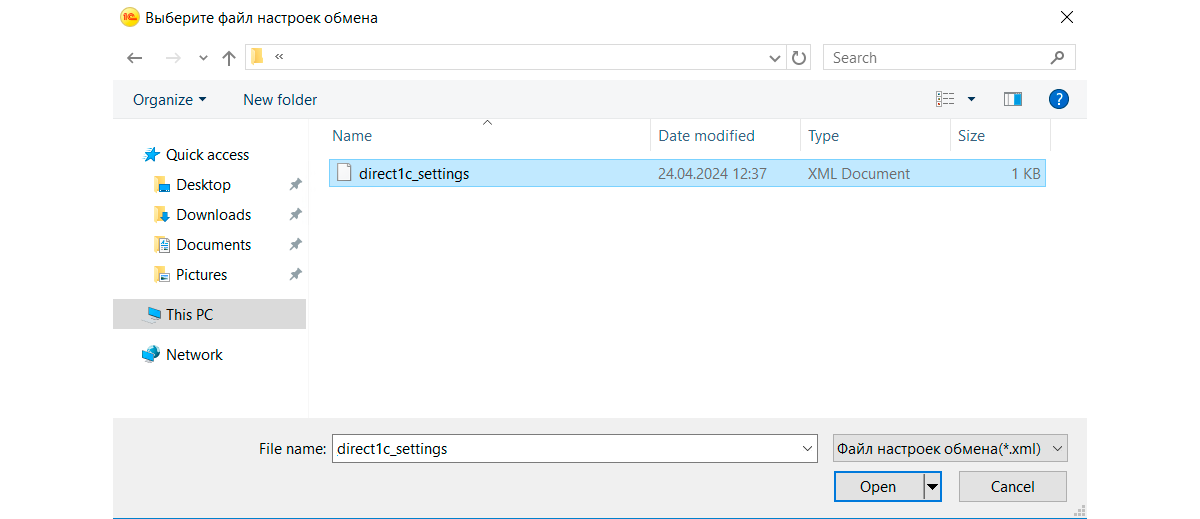 7. Загрузите нужный файл в формате XML.
