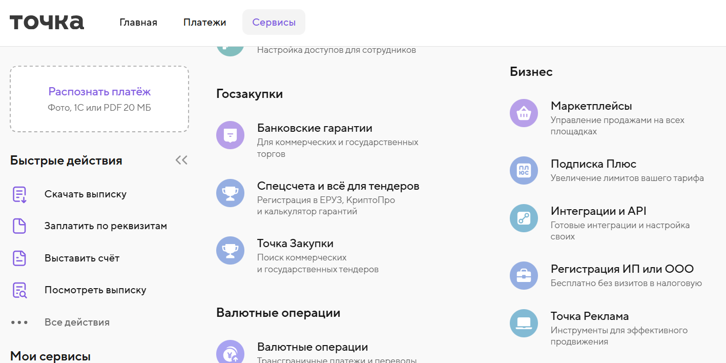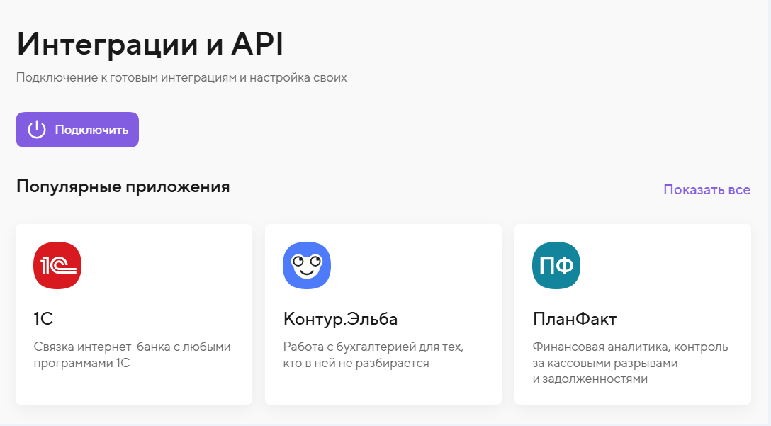 1. В интернет-банке откройте раздел «Сервисы» — «Интеграции и API».