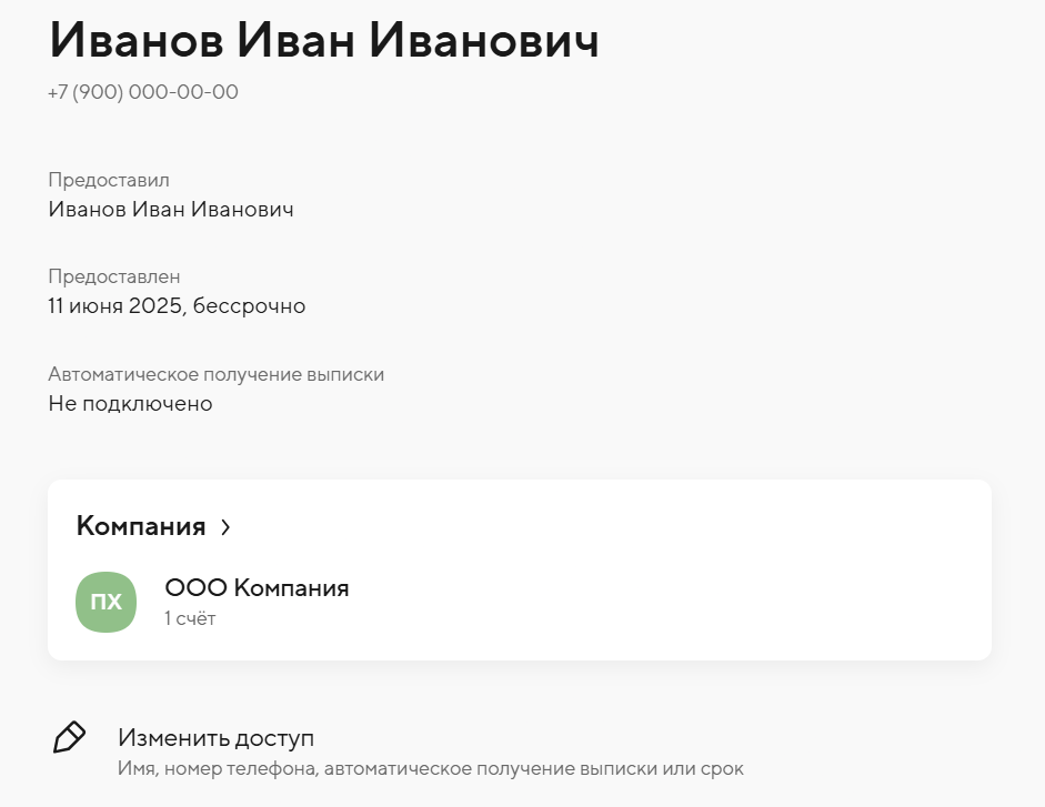 4. Перейдите к Параметрам доступа, подключите пункт «Получать выписку автоматически», нажмите «Продолжить» и сохраните.
