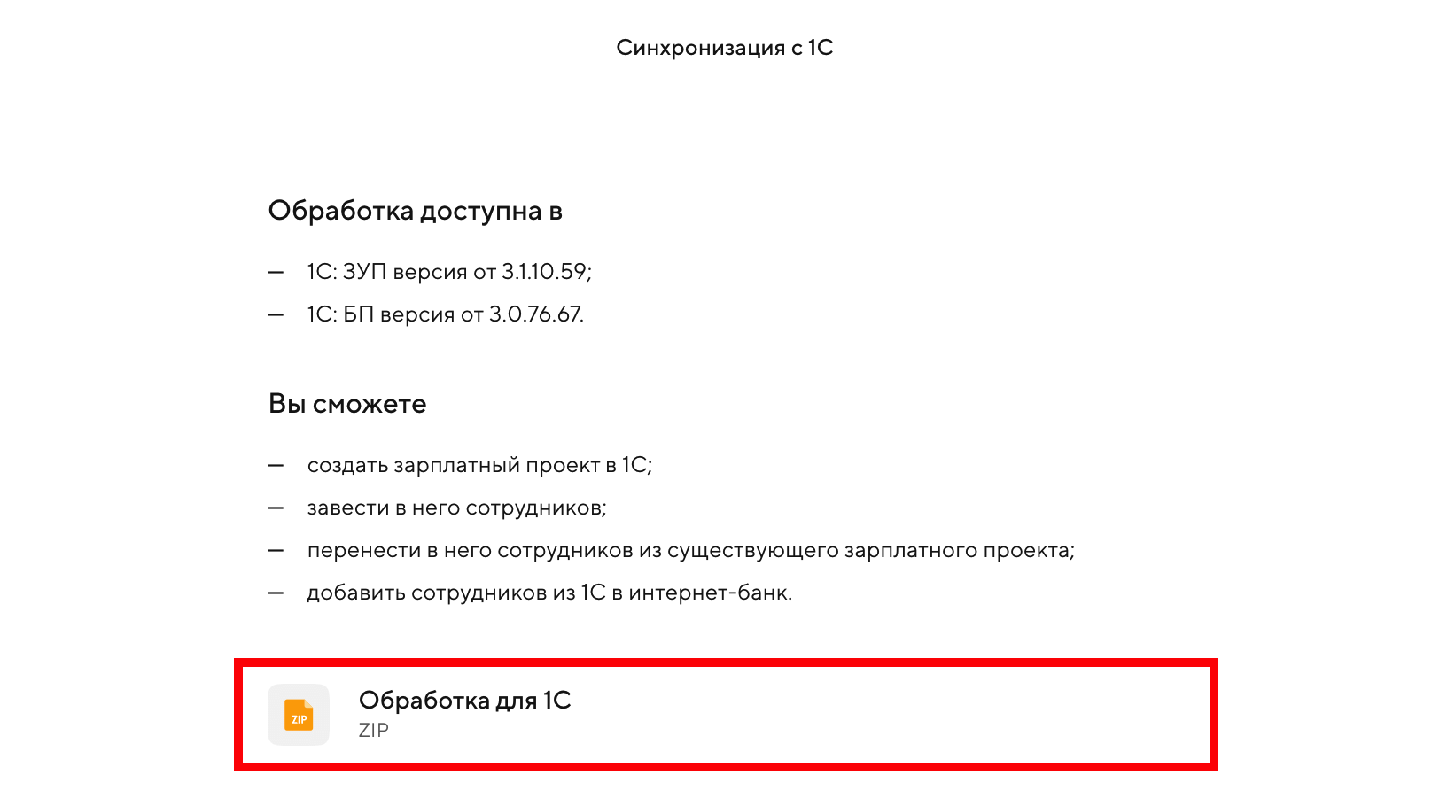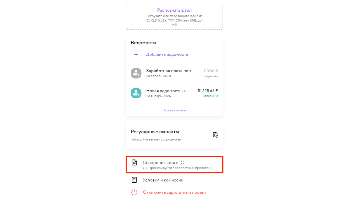 Если для вашей 1С обработка не подходит, вы можете подключить обмен зарплатными реестрами вручную с помощью нашей инструкции.