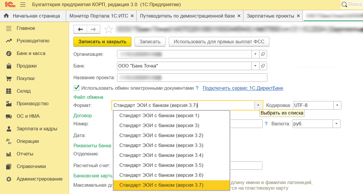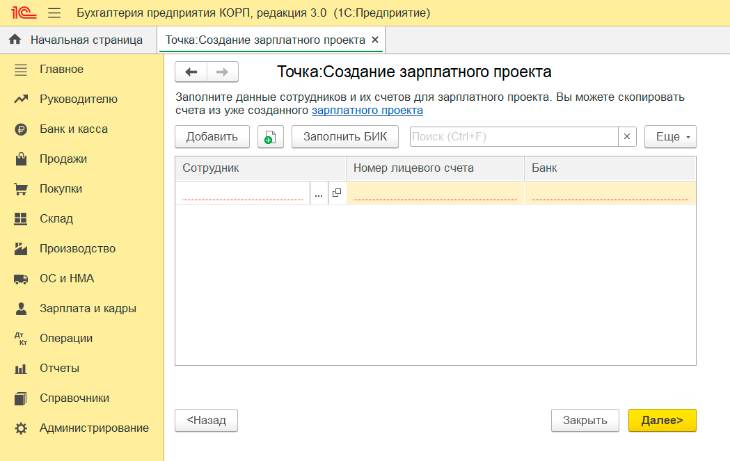 4. Создайте зарплатный проект в 1С.