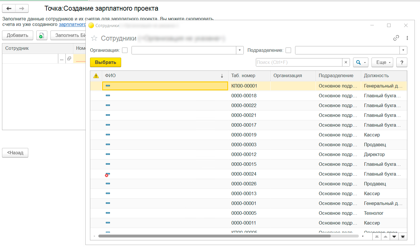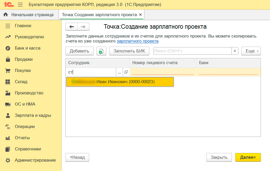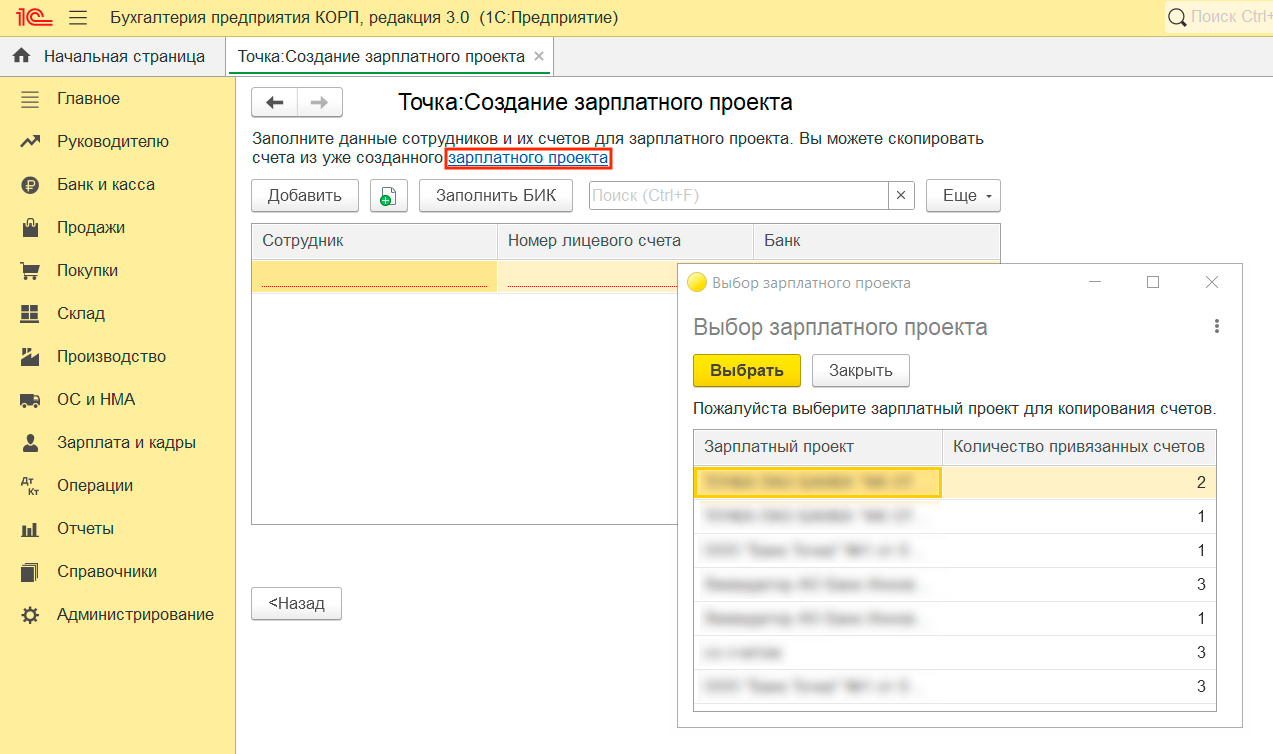 - перенести в проект сотрудников из существующего зарплатного проекта;