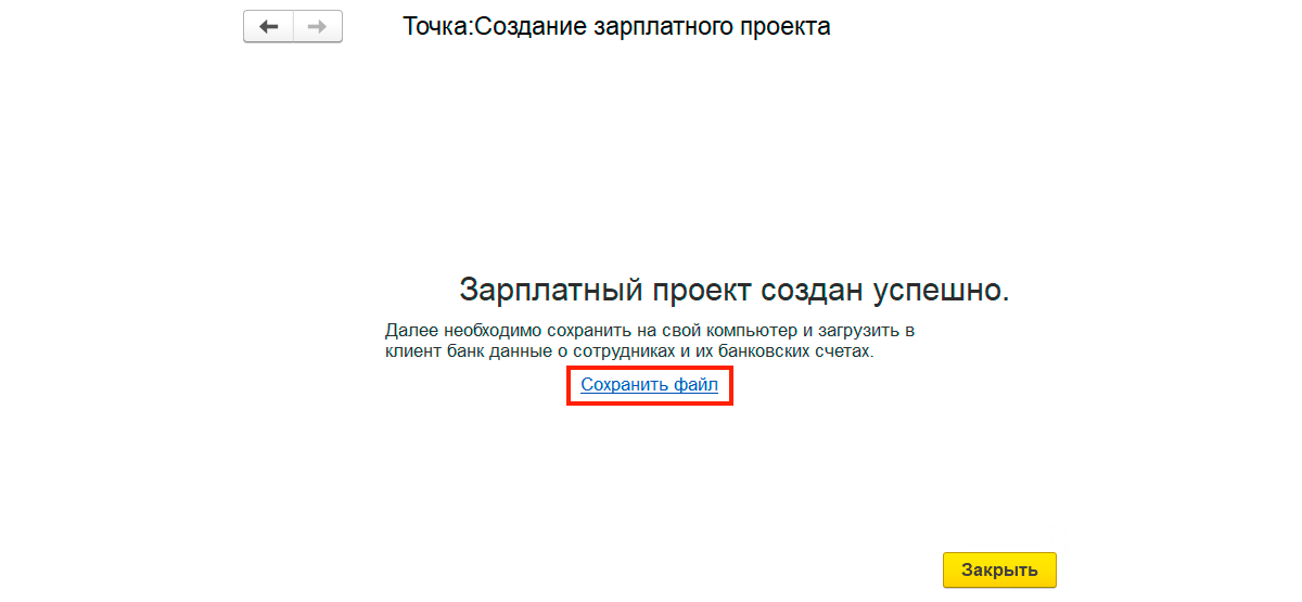 Когда зарплатный проект будет создан, вы сможете сохранить файл с добавленными сотрудниками по ссылке «Сохранить файл».