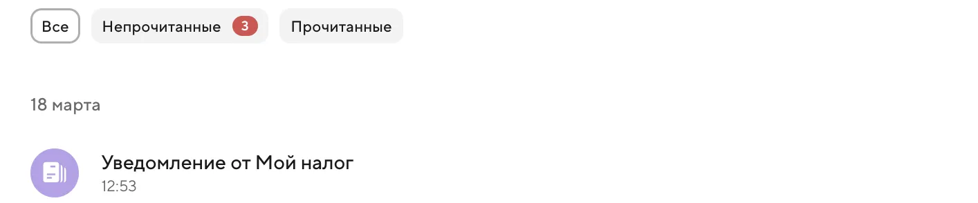 Раздел «Уведомления» появляется автоматически, как только в сервис приходит первое сообщение от ФНС через "Мой налог".