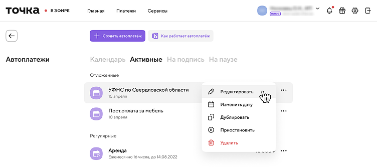 - Выберите «Редактировать» в окне платежа или нажмите на три точки рядом с платежом и выберите эту опцию.