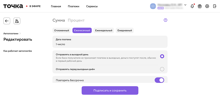 - Откроется окно редактирования платежа. Укажите нужные данные и подтвердите смс-кодом.