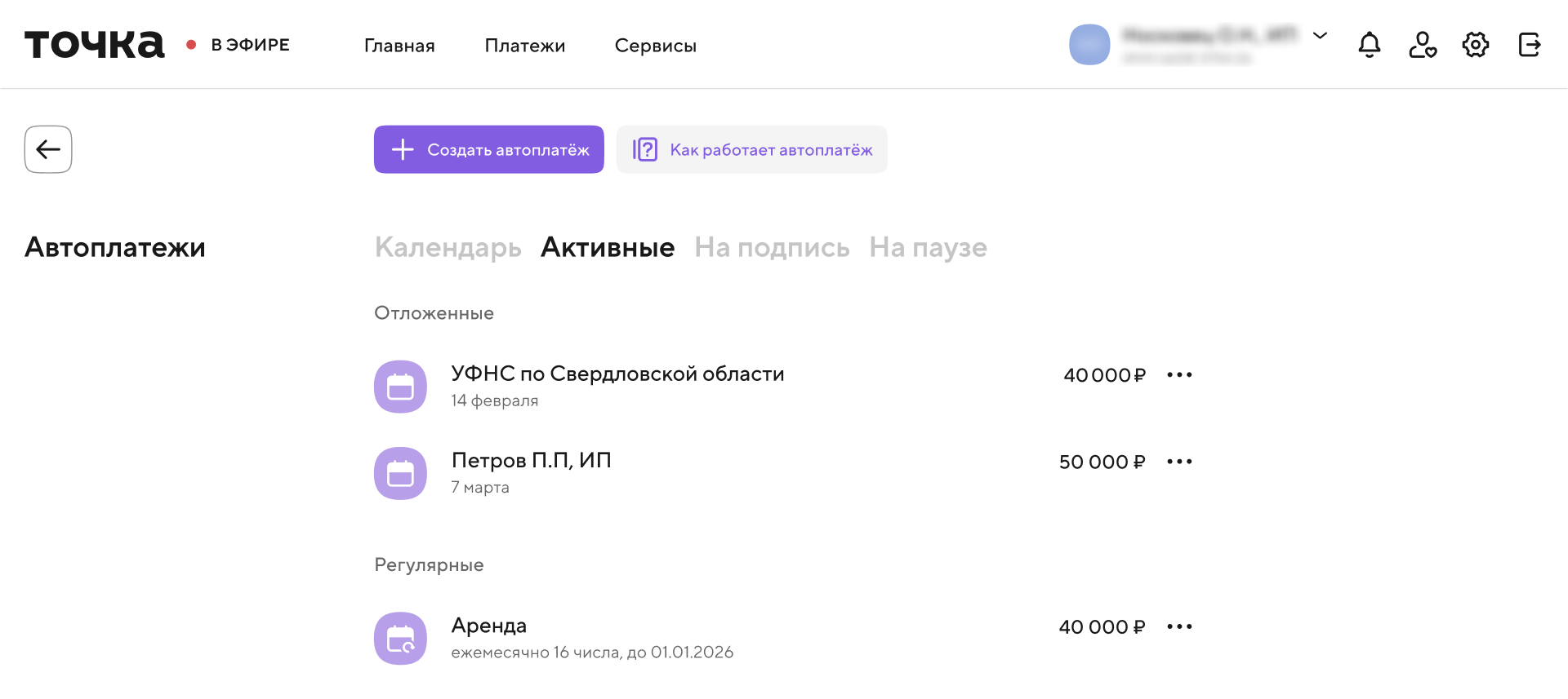 5. Ваш отложенный платёж появится в Автоплатежах. Вы сможете изменить дату или удалить его при необходимости.