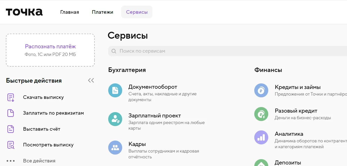 4. На главной интернет-банка откройте раздел «Сервисы» — «Зарплатный проект».