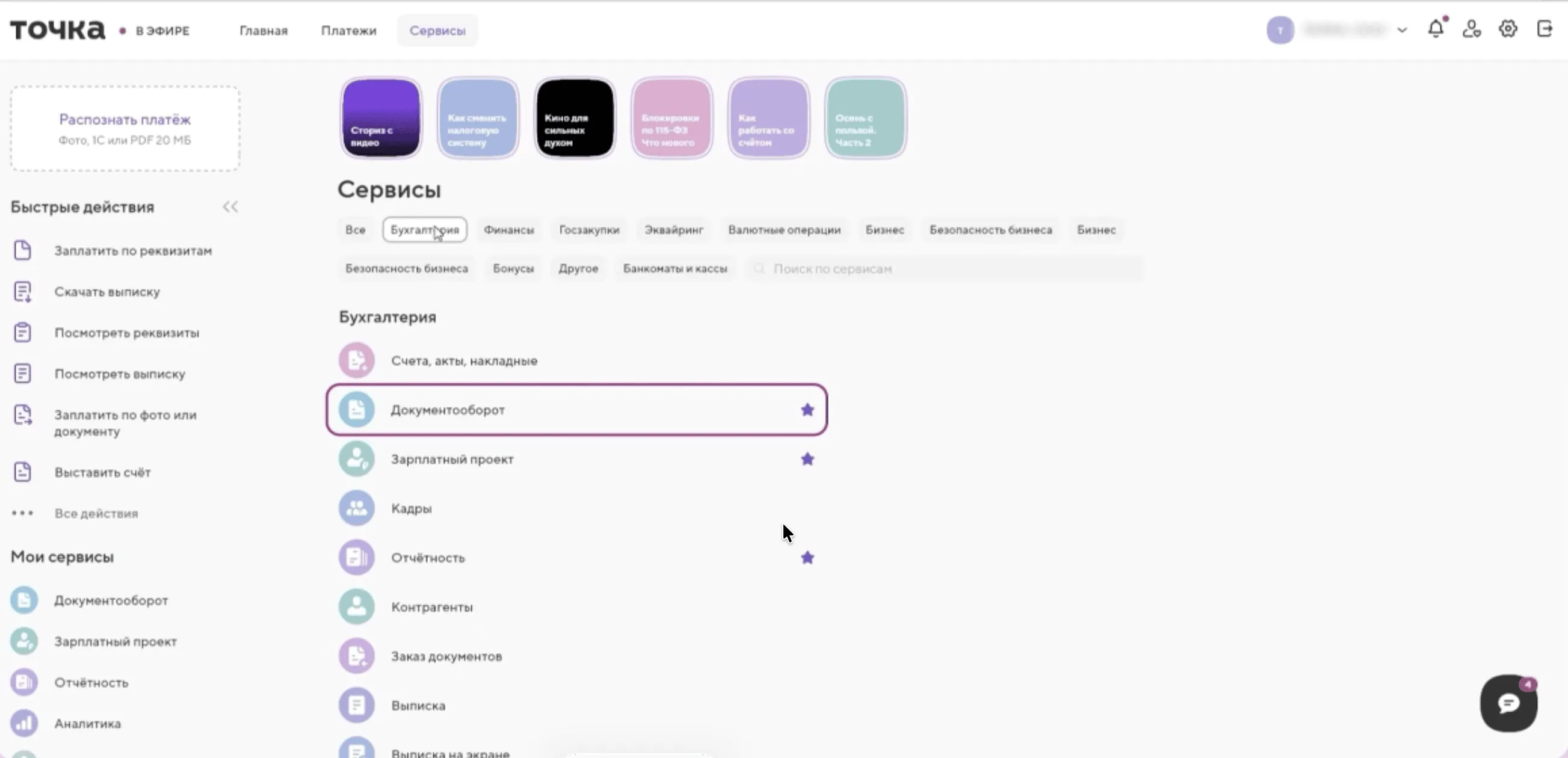 Шаг 2. В разделе «Сервисы» при переходе через главный экран сначала отображается полноэкранная вкладка «Что нового». Для доступа к необходимым подразделам прокрутите страницу вниз. В нашем примере следует выбрать раздел «Бухгалтерия».