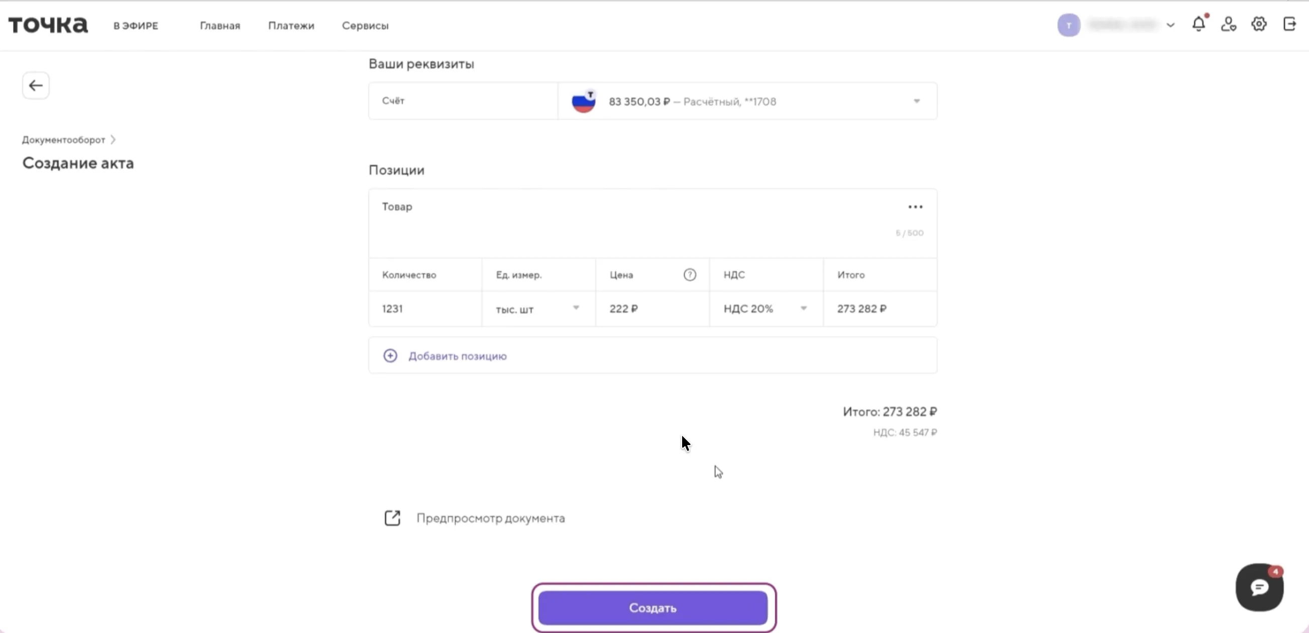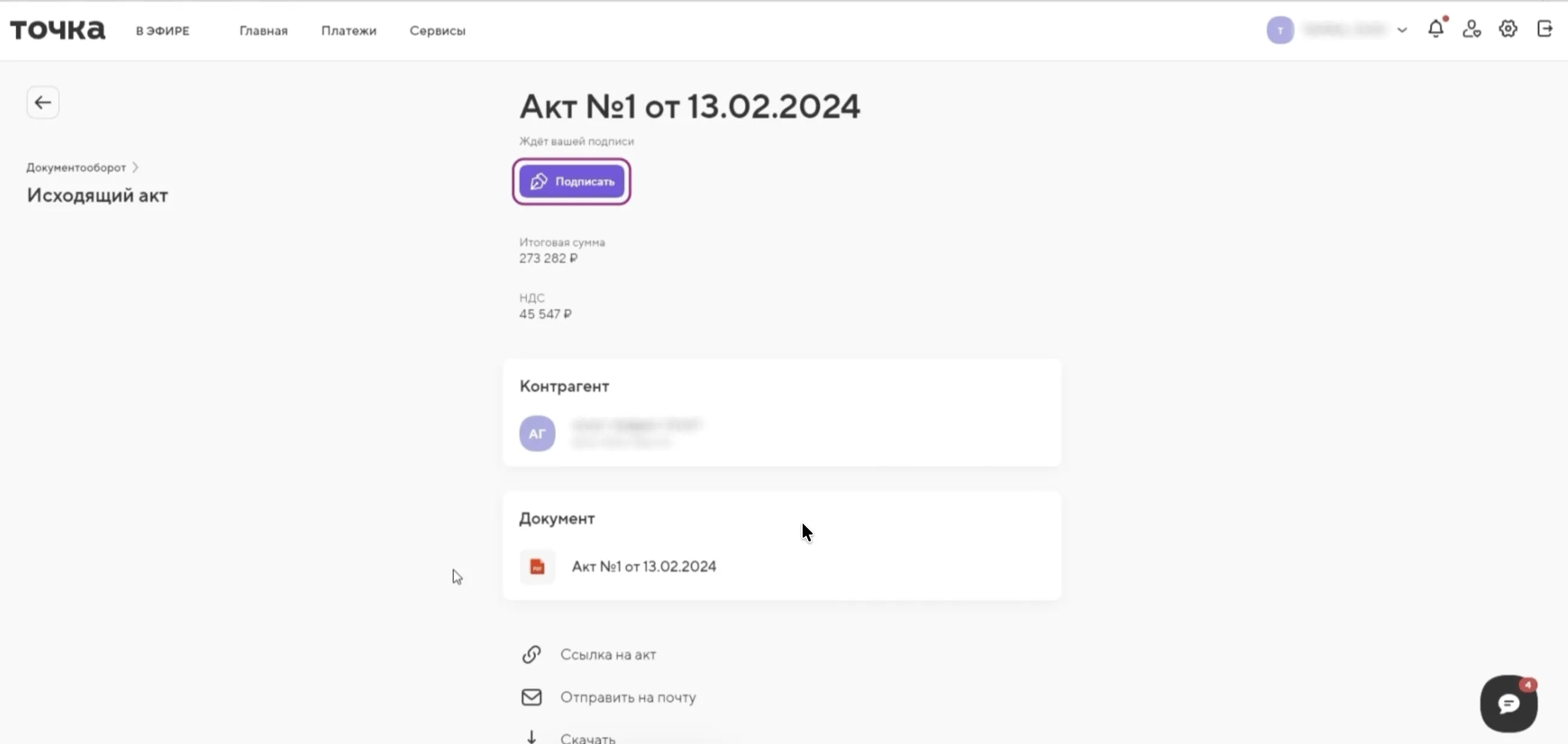 Создать закрывающий документ и подписать его НЭП в онлайн-банке Точка Банка можно за несколько минут. Рассмотрим пошагово, как сформировать акт в разделе «Документооборот», корректно заполнить реквизиты, проверить данные и подписать документ простой электронной подписью (НЭП).