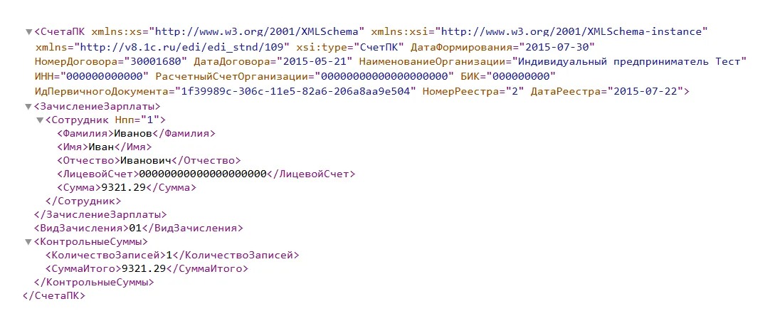 Пример ведомости в формате XML