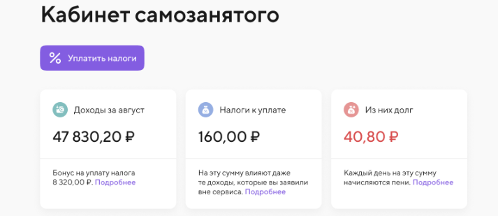 Точка не пересчитывает суммы сама: мы просто аккуратно запрашиваем данные и показываем их вам в личном кабинете. Вы можете увидеть: “Выручку клиента”, “Сумму предварительного налога” и “Сумму к оплате”