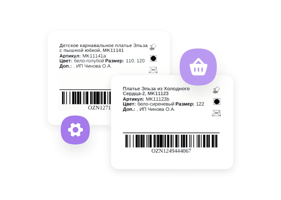 Ускорьте процесс сборки заказов: автоматически генерируйте и распечатывайте стикеры и штрихкоды для любого количества товара.